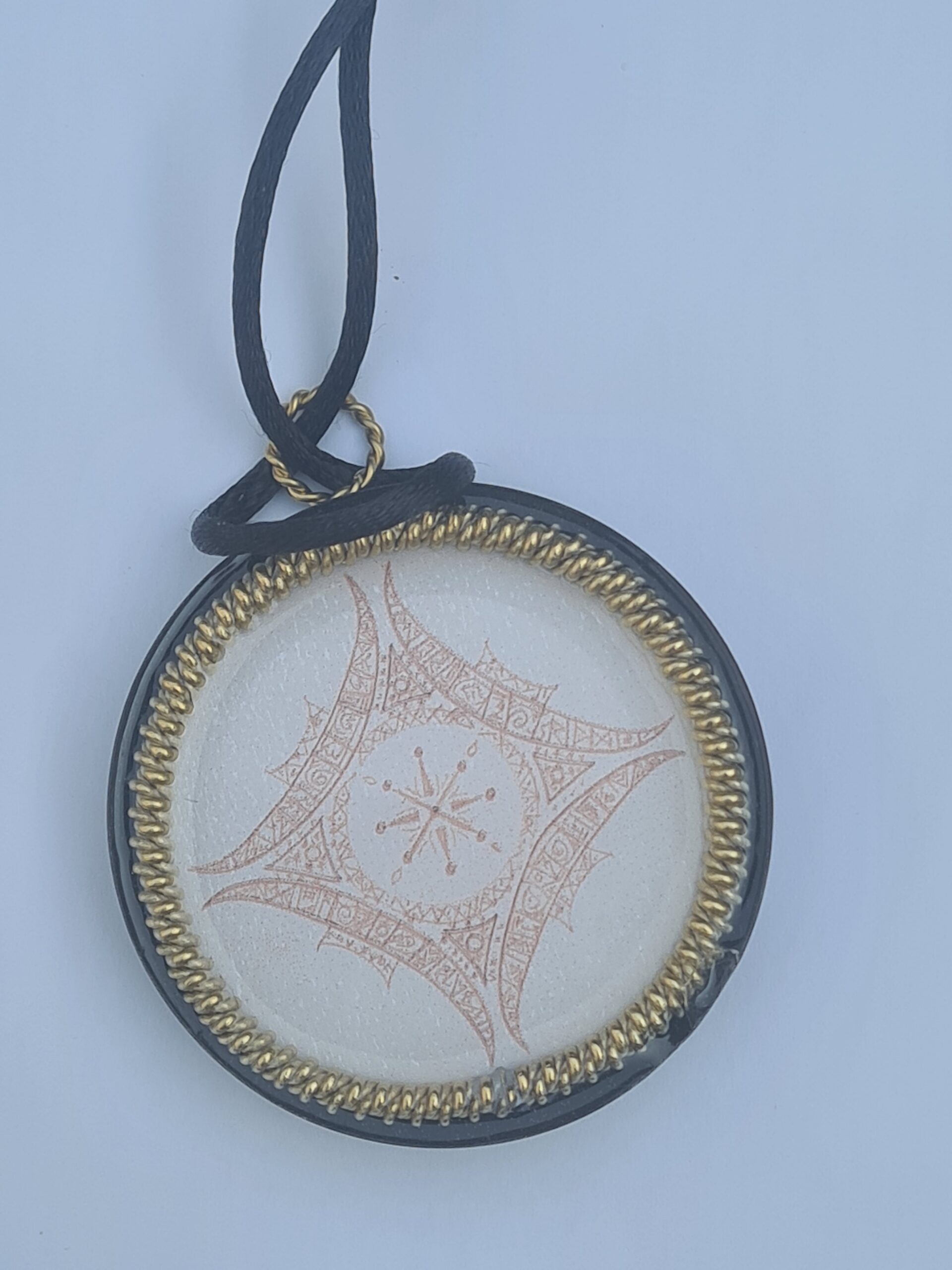 Het symbool ligt op een plaat van shungite en is omringt met een tensor ring die ook de frequentie van het heilige continent Lemuria uitstraalt en is afgewerkt met sneeuwkwarts.